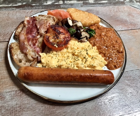 連れ合いはbreakfast setとblack coffee、私はenglish muffinとcafe mocha、貸切の店内で食べるランチは格別♡