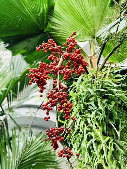 コンドミニアムの庭の色鮮やかなコレ、物知りさんに「ナンテン?」て聞いたら、答えは「No」でした。