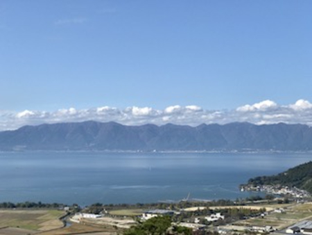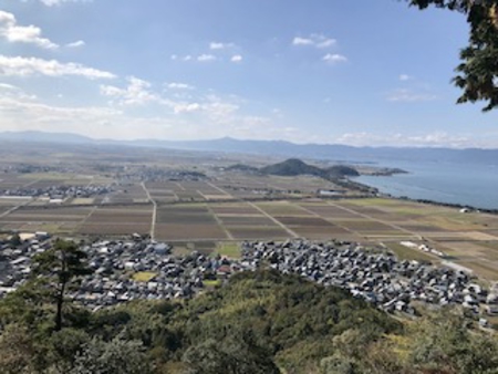 食後は八幡宮にお参りしてからロープーウェイで八幡山山頂まで。琵琶湖が見渡せるということで、歩いて行くと、ホント眼下に湖が広がります。秋空と静かで穏やかな湖・・ほどよく登山者や観光客が行き来するだけの自然溢れる山でした。