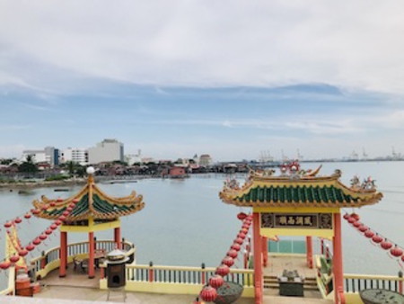 美味しいパンとラテを頂いてから、桟橋にある道教寺院へ案内してくれました。ママたちの早口英語は私の耳を素通りして詳細は分からないけれど、冬至で新年を迎えたためのご挨拶かな。でもチャイニーズニューイヤーは来年だし・・はて??