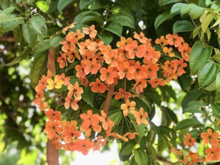 ウォーキングに通うボタニカルガーデンでは、この時期、桜に似たピンクの花を付ける大きな木が咲き乱れ、あちこちで華やかな花々を目にします。昨年訪れた京都植物園や比叡山の木々は高く鬱蒼としていて、歴史を感じる落ち着きがありました。こちらの熱帯雨林は更に高く聳え、緑の葉っぱがこれでもか!と生い茂り、見上げる場所に原色の花が咲きます。
