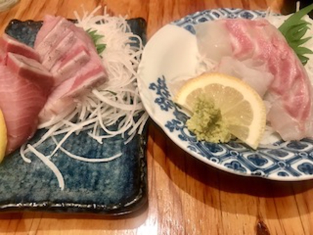 夕食は早めに近所の居酒屋さん。秋に訪れた時、お刺身や唐揚げを美味しく頂きました。で、今回もお刺身&ポン唐。