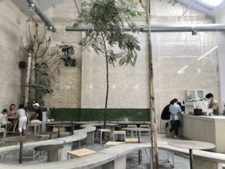 軽く二周歩いたあとは、街中カフェでランチです。若い家族連れが好むカフェかな。入り口がどこだか分からないドアになっていて(笑)、中も工場みたいね。どのカフェ訪れても、私たち年代の人は見当たらず、それでも、美味しいカフェラテ飲みたくて、めげずにあちこちのカフェへ出没してます。