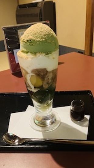 私はパフェを頂き、連れ合いはわらび餅とお抹茶、ホントに美味しい・・シアワセ
