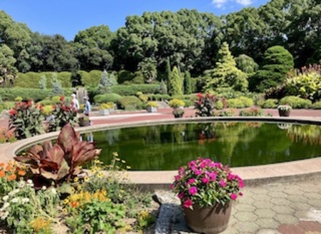 午後から残暑厳しい日でしたが、木陰を歩き、木々の緑を堪能です。バラ園など花々の数は少なかったですが、植物に囲まれるとなんとも気持ち良いです。前回は行かなかった温室へ行ってみました。つづく
