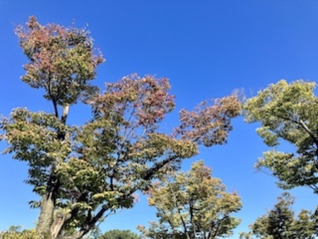 雨が少ないせいか木々の葉っぱは枯れ葉っぽいけど、メインストリートの欅は少しず色づいて来た感じ。