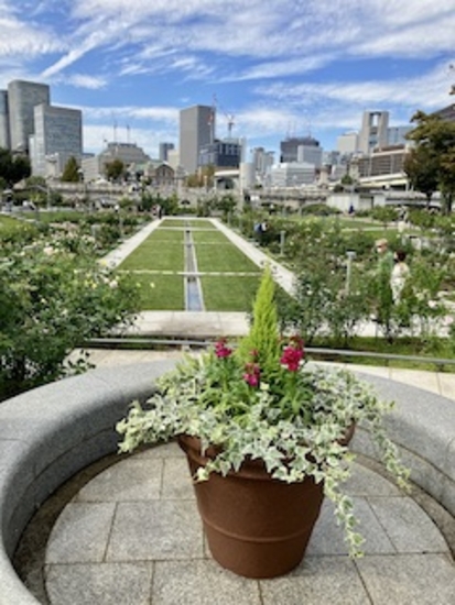 写真は、バラ園近辺そして川縁りを歩きながら科学館、最後の一枚は遠くから市役所です。