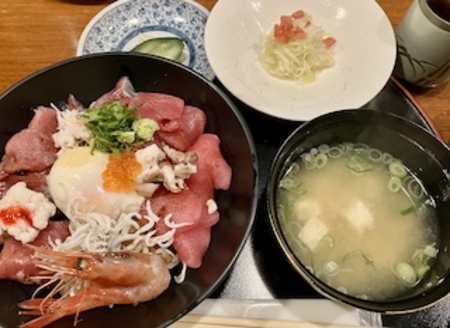 終点「淀屋橋駅」から中之島を通って梅田方向へ。途中日銀の前で黄色に色付く銀杏を眺め、まずはランチお目当ての北新地です。連れ合いは仕事していた頃、出張でこの周辺に出没していたそうな。正確には曽根崎新地の路地を入った割烹で海鮮丼を頂きました。ランチ営業の少ない居酒屋さんや料理屋さんがギッシリ立ち並ぶビルの奥にある小さなお店、ドアを開けたら満席、お客さんがいっぱいでギリギリ待たずに着席。主に料理するのは年配の主人。いやー美味しかったです。