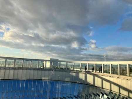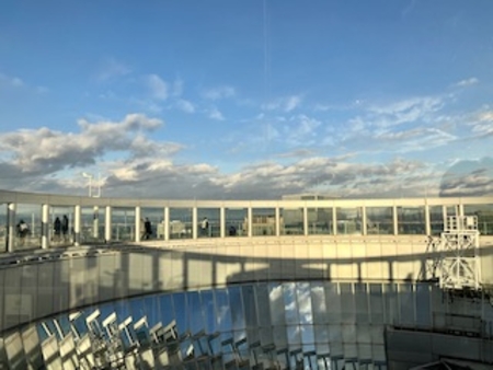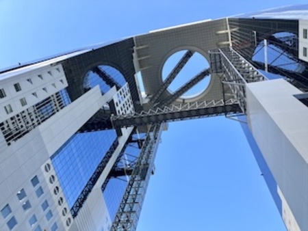 梅田&大阪駅周辺はビル街で、東京だと東京駅や丸の内、八重洲から日本橋という感じかしら。阪神&阪急から少し離れたスカイビルの空中庭園へ向かいました→高い場所が好き。連れ合いが言うには、かなり以前からあるビルだそうです・・