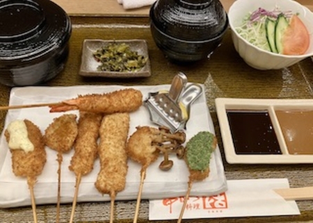 串カツは衝撃的な美味しさで、初回で好きになった大阪のソウルフード。で、2回目のトライ。今回はランチでご飯付きで、やはり幸せな美味しさでした。