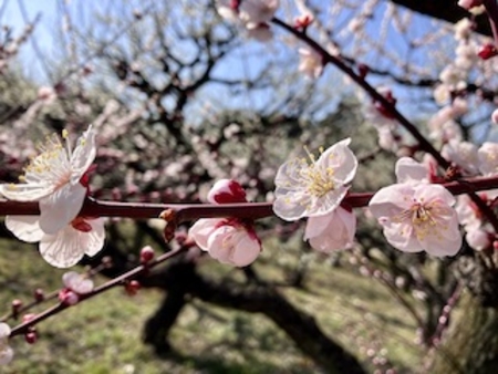 梅林はその一角にあり、思いの外、広いスペースを取っていました。色とりどりの花、蕾、枝振りを眺めながら、飽きることなく美しい梅林を堪能しました。