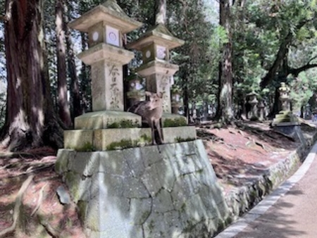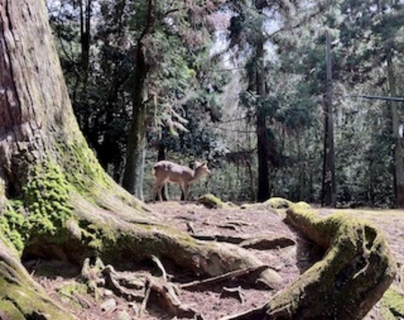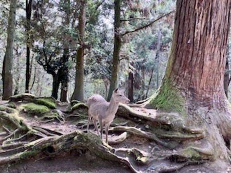 奈良公園といえば「鹿」が至る所にいて、小さい人たちは大喜び。中学生女子の希望で春日大社へ。次第に「鹿」が神々しくなって、神社をひっそりと守っている感じです。春日大社から再び公園へ戻ってお手製オニギリなどでお昼ご飯。