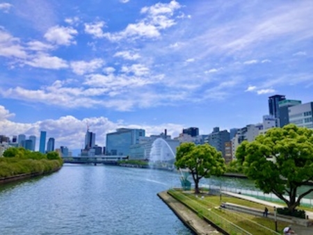早めに着いたので中之島公園から噴水までウォーキングしてから、謎に満ちた(笑)商店街へ。