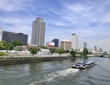 太い御堂筋通りが真っ直ぐに走り、両側にはどっしりしたビルが並び、中には戦前のレトロな建物もあり、中之島を挟んで川が流れるこの辺りはお気に入りスポットです。