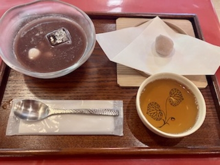 神社近くの和菓子屋さんでわらび餅を買えず、境内近くのお茶屋さん「さるや」の「冷やし汁粉」&「申餅」で一休み。風に吹かれてゆっくり休めるお茶屋さんは嬉しい。申餅は美味しくて買って帰りたかったけど賞味期限は本日中とのこと・・諦めて代わりに「賀茂葵」買いました。小豆の美味しいお菓子でした♡