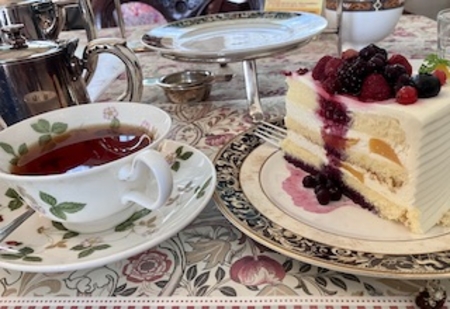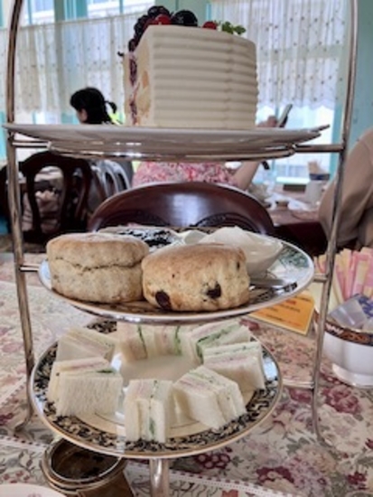 一番下がフィンガーサンドイッチ、二番目がスコーン、三番目のケーキは大盛りベリーのショートケーキです。紅茶の種類も豊富でゆっくり味わえる分量、全て良かったです。