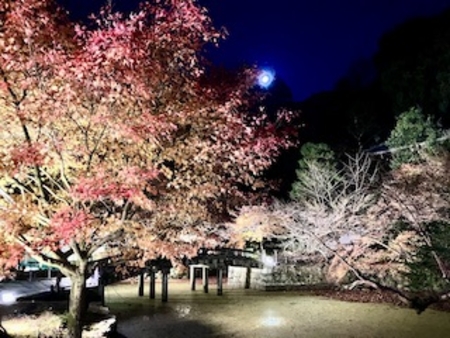 連れ合いたちはお堂でお坊様のお話を聞き、私だけはライトアップされた寺院の庭をあちこち散策。