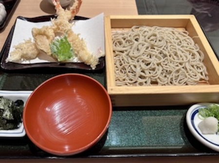 前回はお蕎麦(おうどん)食べ放題を皆んなで食べたので、今回は単品・・私はざる蕎麦を頂きました。長女は天ざる蕎麦、男性二人は天丼セット・・美味しく頂きました。ご馳走さま!