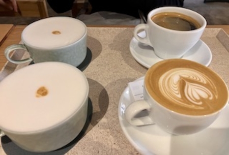 美々卯の近所にあるカフェ「OURLOG」、Johnが行ってみたいと話ていたので帰りに立ち寄ってコーヒーもご馳走さま。