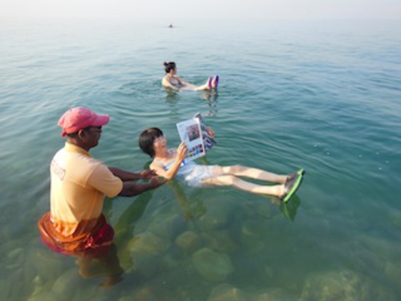 塩分濃度が30%と高い死海には生物が生息せず、「浮遊体験」はとても有名。
