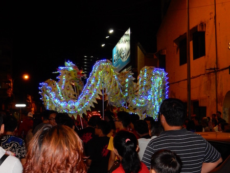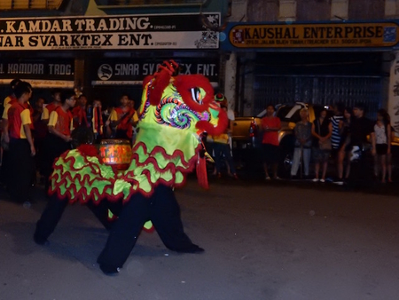 街角で行われる中国式「獅子舞?」や「ドラゴン?」を眺めました。