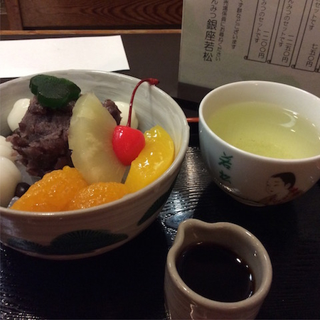 空き時間できて、銀座ブラついていたら、小腹が空いて、銀座コアビル「若松」であんみつ。