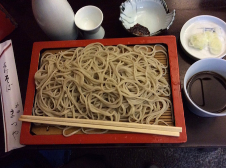 「まつや」で、もりそばと日本酒。これで、本日は至極満足と相成りました!