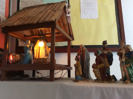毎週訪れている教会で、可愛いクリスマスの置物が入り口に置いてあって、