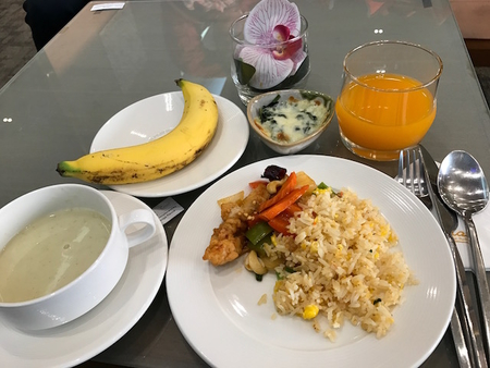 チェンマイ空港のラウンジで、朝食をゆっくり。
