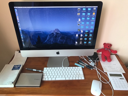 紙やペンやら、適当に散らかってるスペースが落ち着くけど、