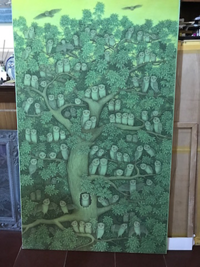 作家のイワヤン・シーラ氏、何と日本語堪能で、絵を拝見しながら楽しいお喋り。