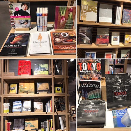 本のフロアには、日本の本や雑誌の英語版がズラリと並び、