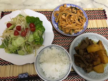写真は見事、茶色の食卓・・肉じゃがです(笑)