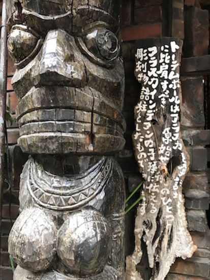 外観はユニークで、ここでアラスカ?トーテンポールに会えるとは、驚きです。