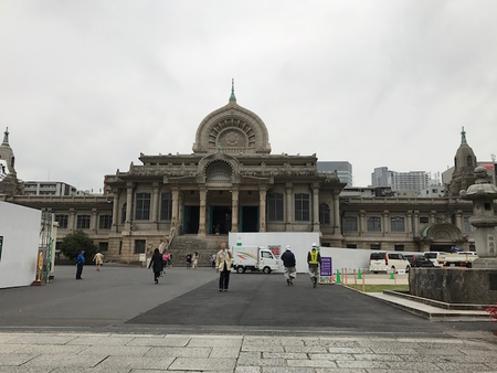 前方と後方を乗り違えて、築地本願寺が遠くに。