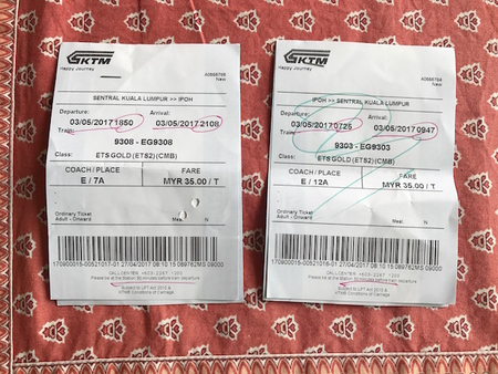 イポーからKLセントラルは、2時間少々の距離、片道35R 約900円です。