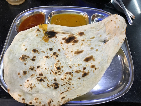 ナンのソースもチキンのソースも、比較的スパイシー。