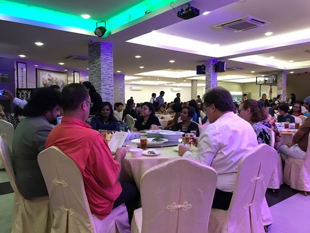 30分ほど遅れて開始、音楽やスピーチがあって食事して、
