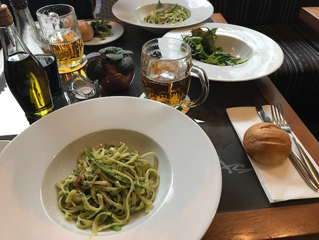 パスタやサラダも美味。ビール入れて、一人1500円くらい。