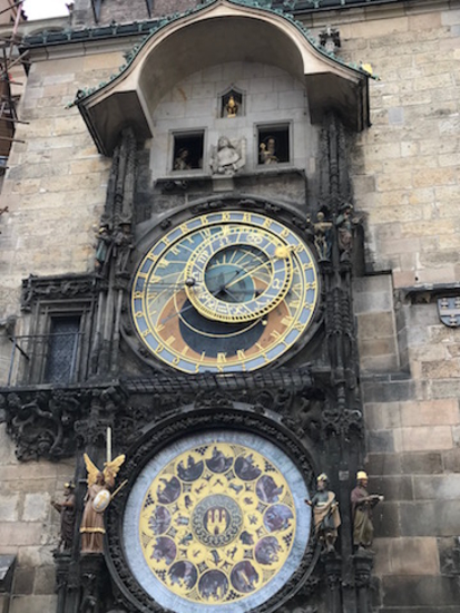 大きな天文時計が鳴り響くのを眺めて、ヴルタヴァ川のほうへ、