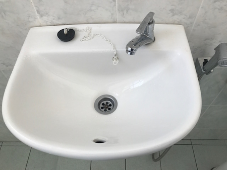 大きめのバスルームの洗面台、先月から、排水がつまり気味になって、
