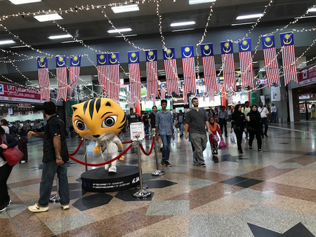 KLセントラルには、マスコットや国旗が飾られていて賑やか。