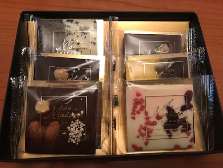 マレーシアのマンゴーグミをお土産に渡し、美しいチョコ頂きました。