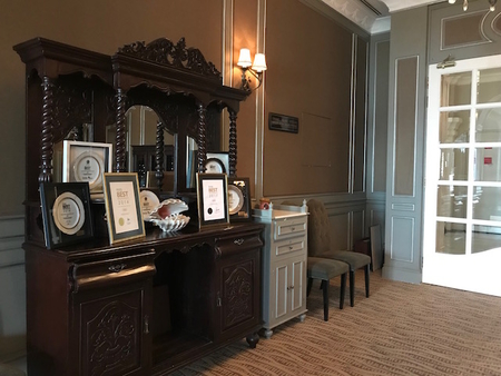 落ち着いた色調と古い調度品の数々、昔ふうの窓から海を眺めながら・・・