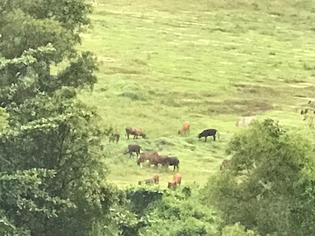 アパートの敷地のお隣のお隣辺りに、放牧中の牛さんたち発見。