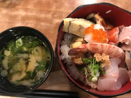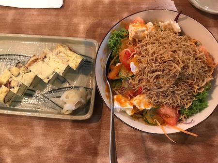 ランチは「海鮮丼」と「じゃこサラダ」「卵焼き」でした。
