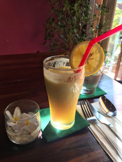 ジュースは、どのレストランも美味しくて、ここではパイナップルオレンジ。