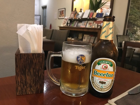 夕食は軽くラオビールで、静かな夜の街を散歩する