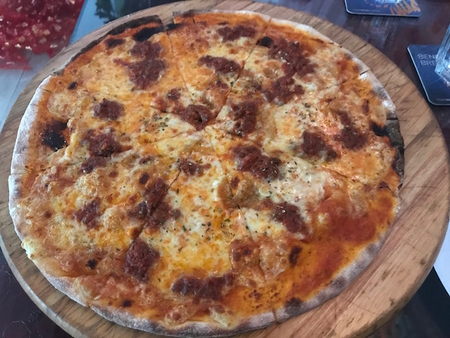 連れ合いとランチに街中レストランでpizzaを食べて、