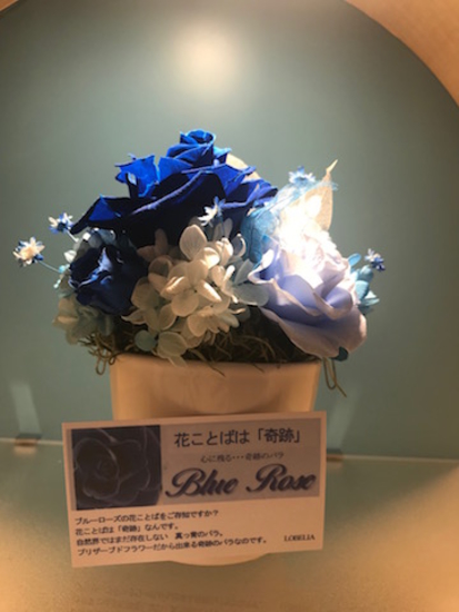 廊下には、花言葉付きのブリザードフラワーが飾ってあったり、